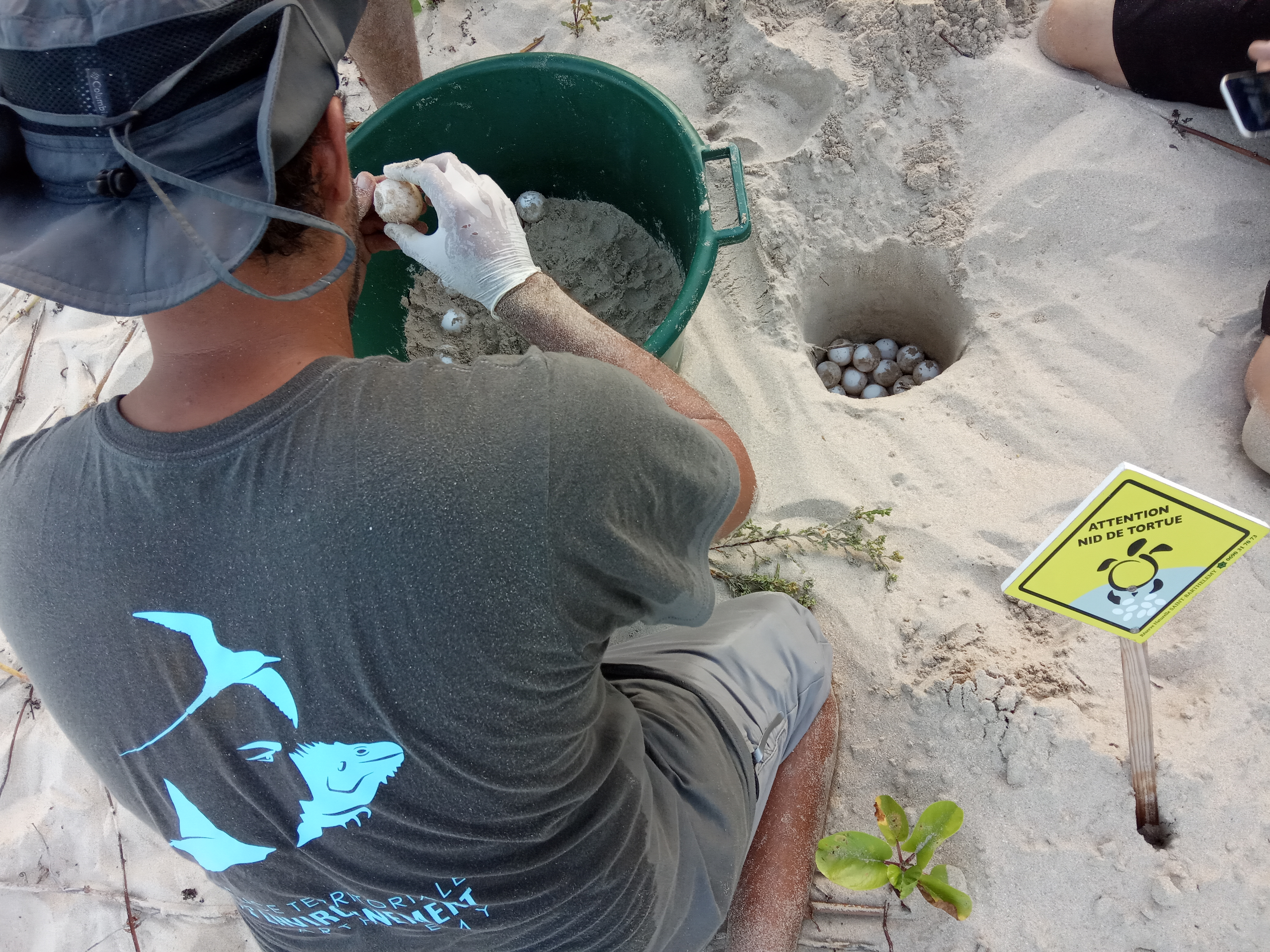 La localisation exacte du nid permet de le protéger en le balisant le temps de l’incubation; Mais également, une fois l’émergence passée, de permettre aux agents habilités de l’ATE de creuser le nid et de calculer le taux de réussite du nid. Ce résultat nous permet de suivre la qualité des sites de ponte et d’identifier d’éventuelles dégradations d’origine naturelle (fortes pluies, houle cyclonique) ou anthropiques (feu sur le sable, circulation avec des engins, urbanisation, etc).